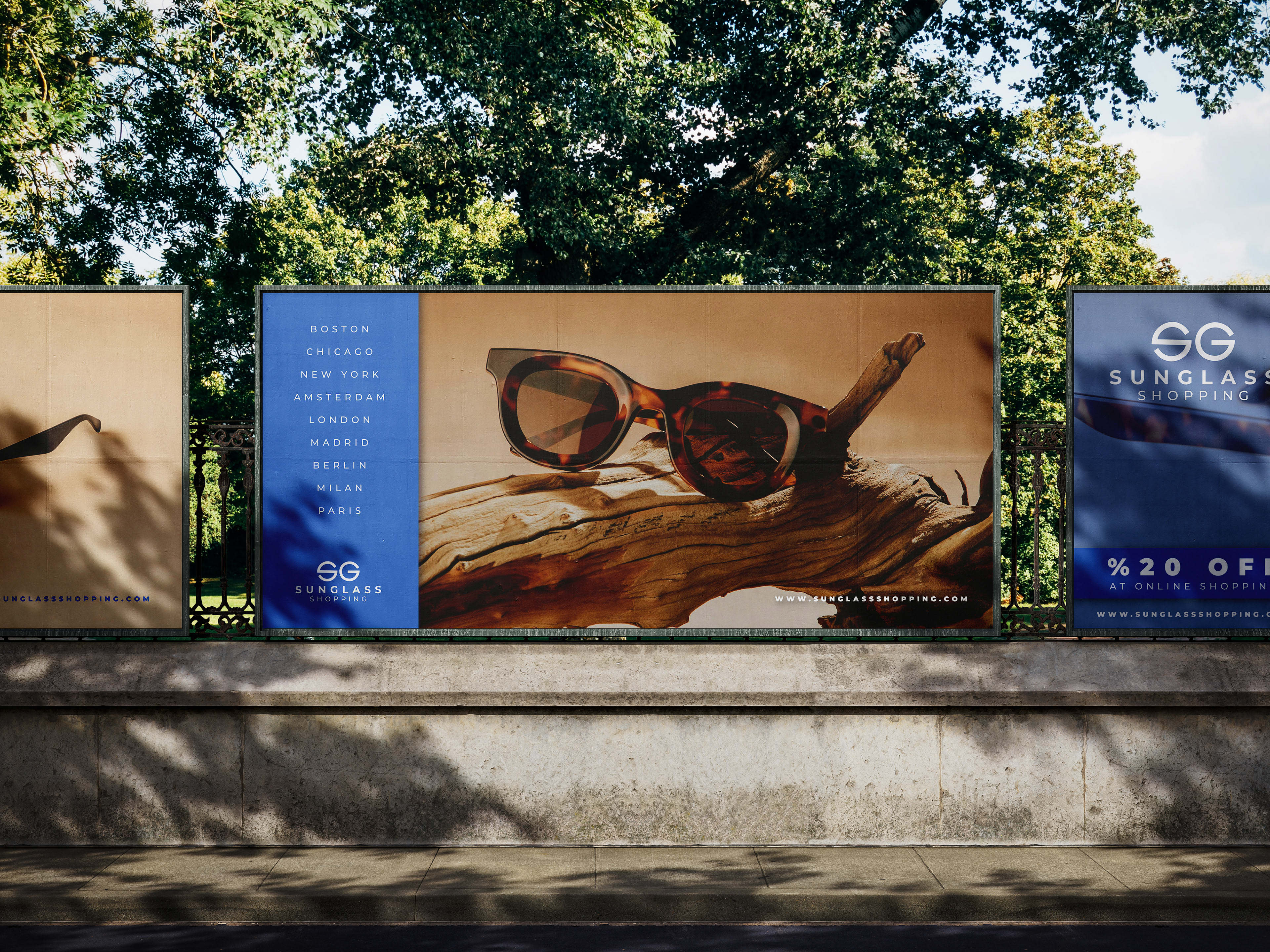 This billboard advertising campaign was designed for Sunglass Shopping, a stylish online retailer specializing in premium eyewear. The project goal was to create an eye-catching and luxurious visual presence in outdoor urban environments, combining product elegance with brand clarity.